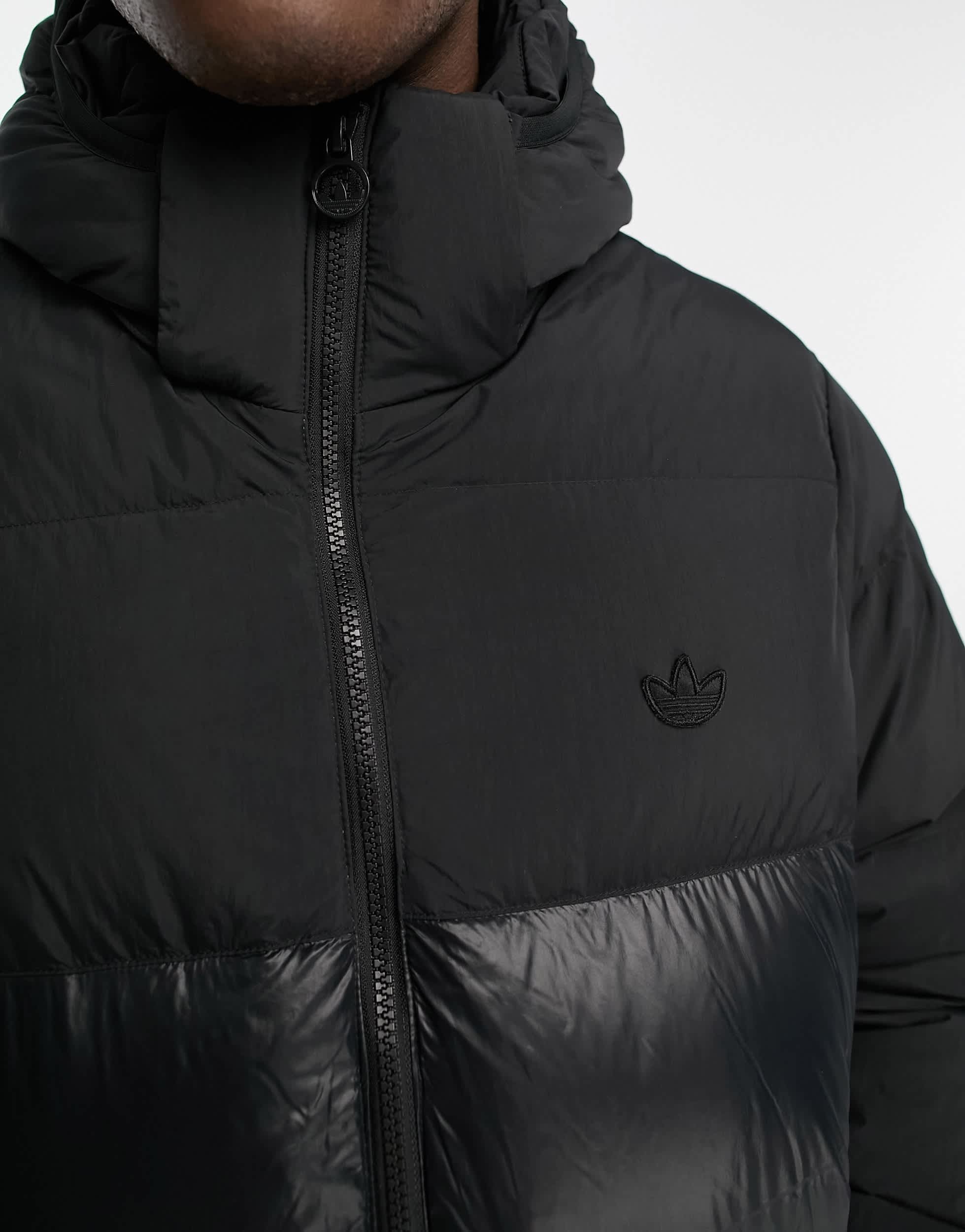 adidas Originals down puffer jacket with hood in black