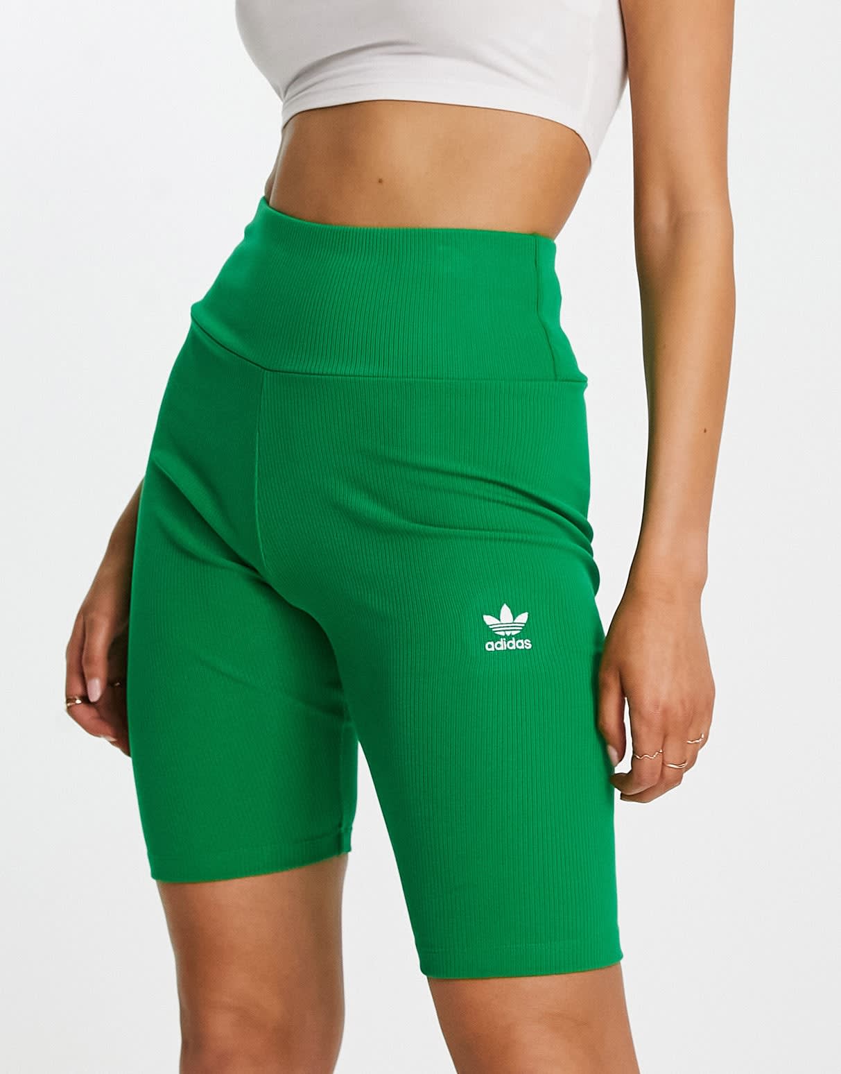 adidas Originals ribbed legging shorts in green
