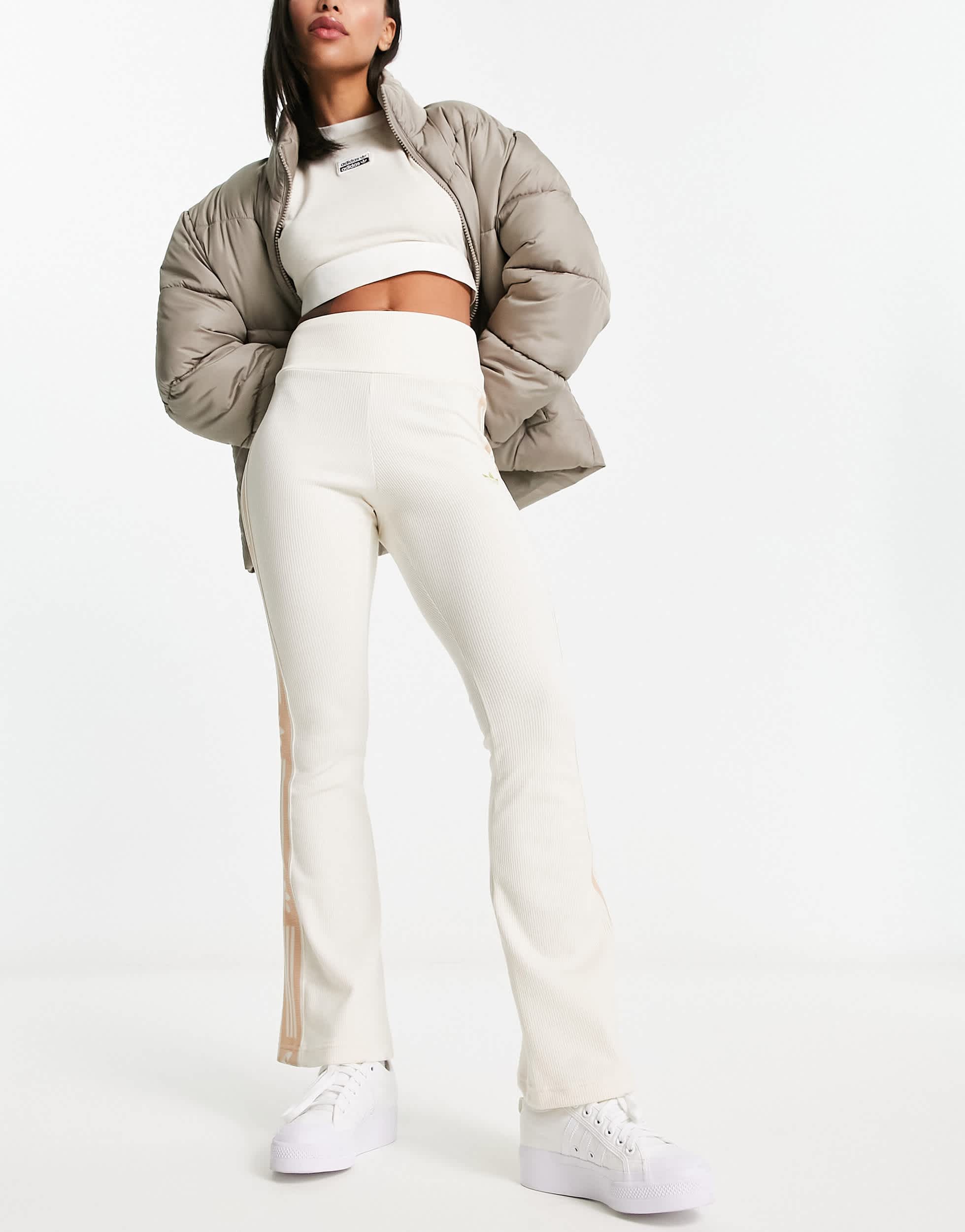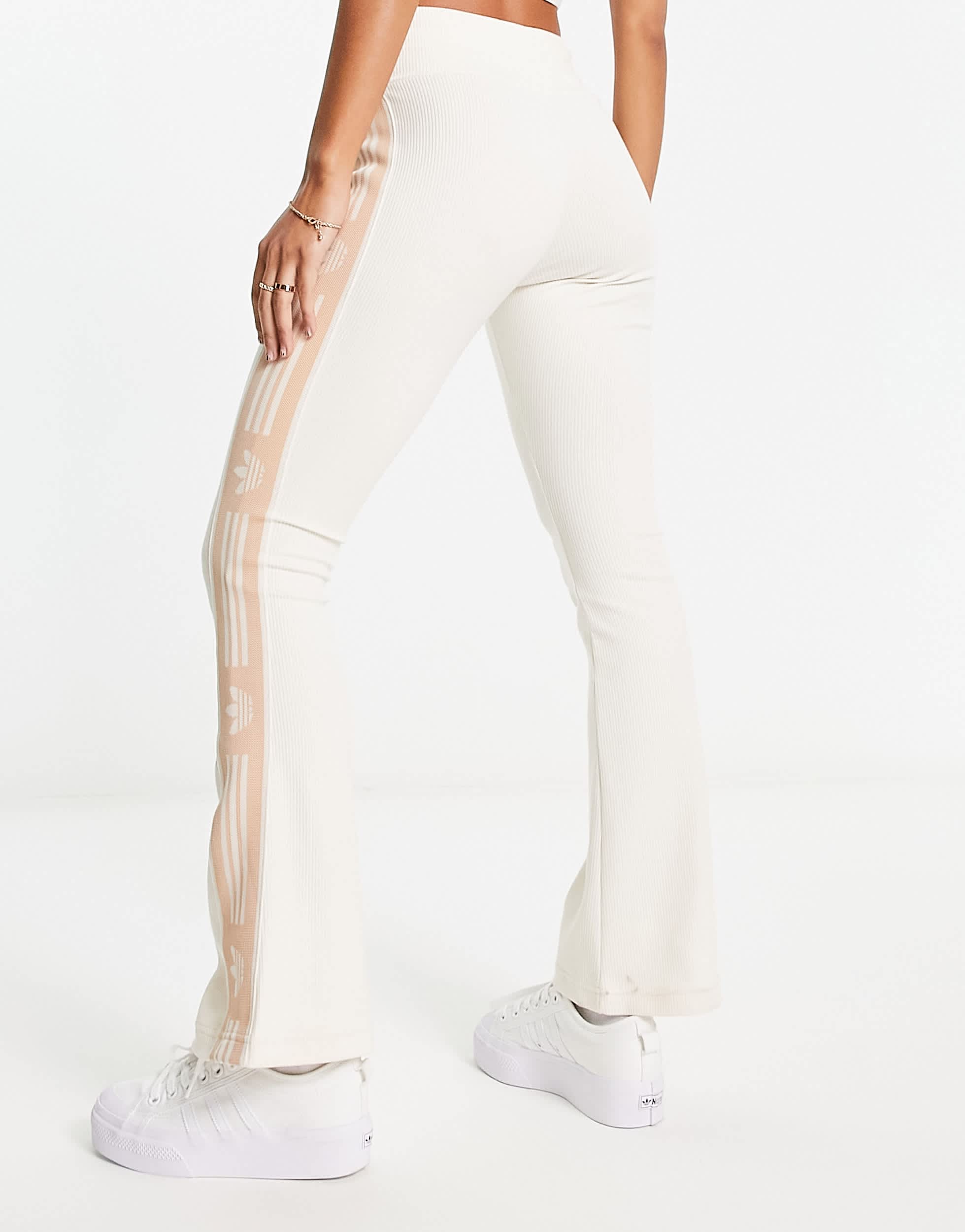 adidas Originals 'ski chic' flared rib leggings in oatmeal
