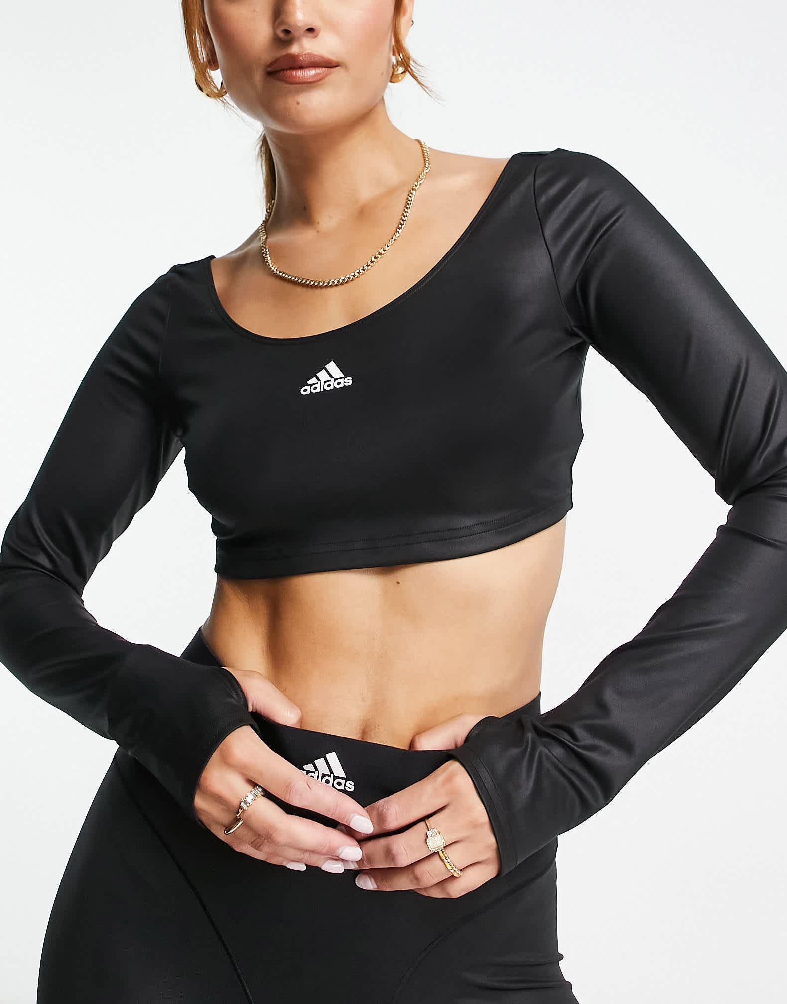 adidas Training Hyperglam long sleeve crop top in black