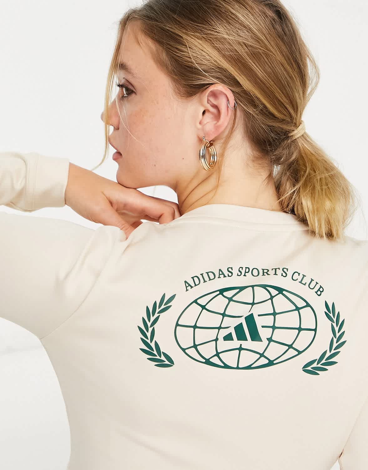 adidas Training Sports Club back print graphic long sleeve crop top in white