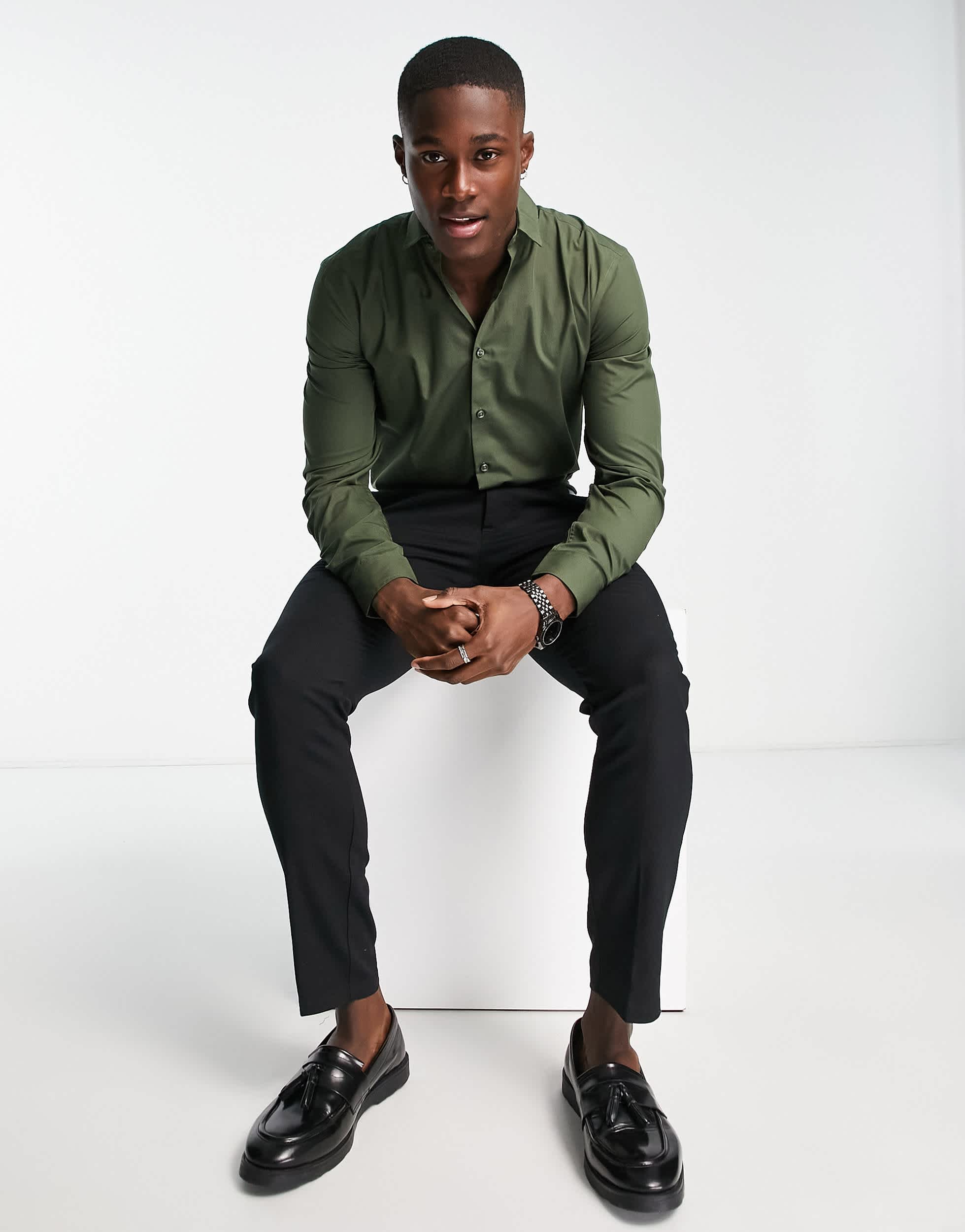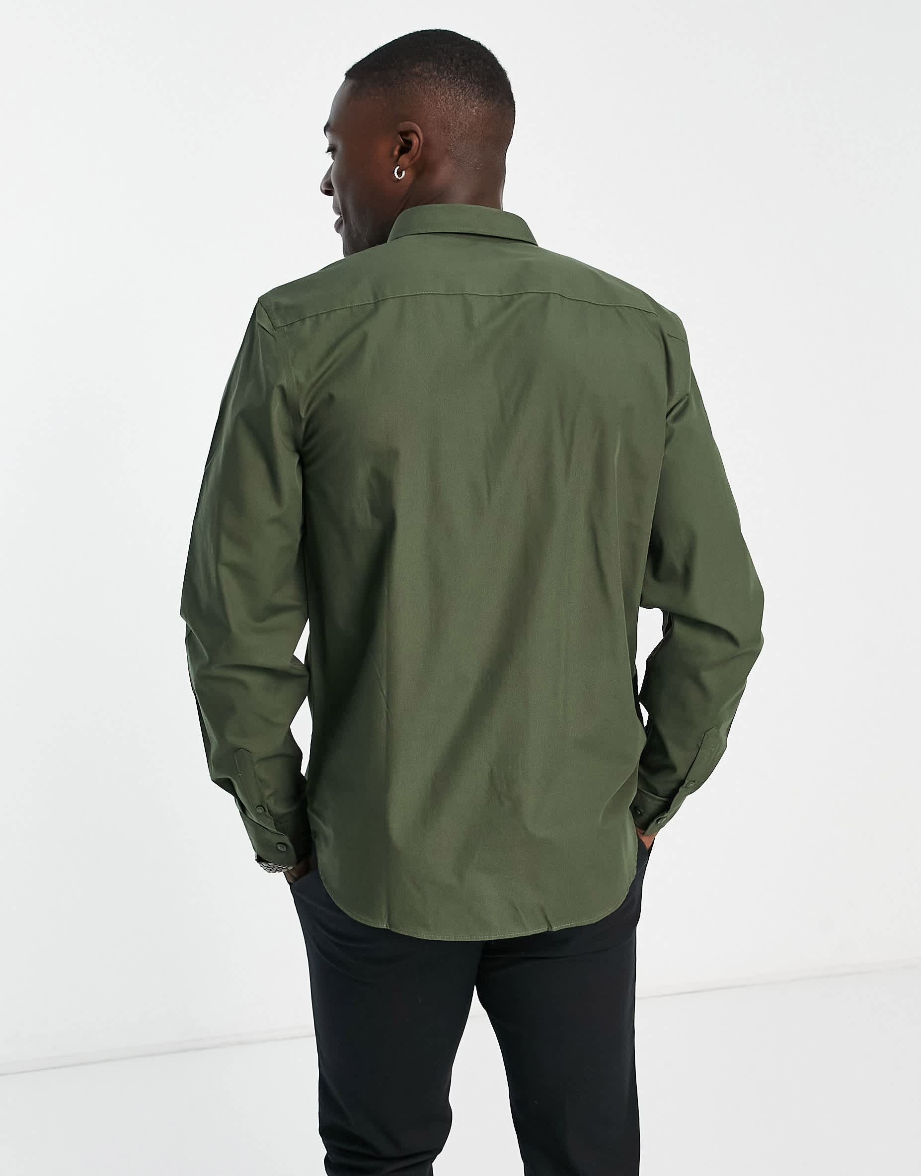 New Look long sleeve poplin shirt in khaki