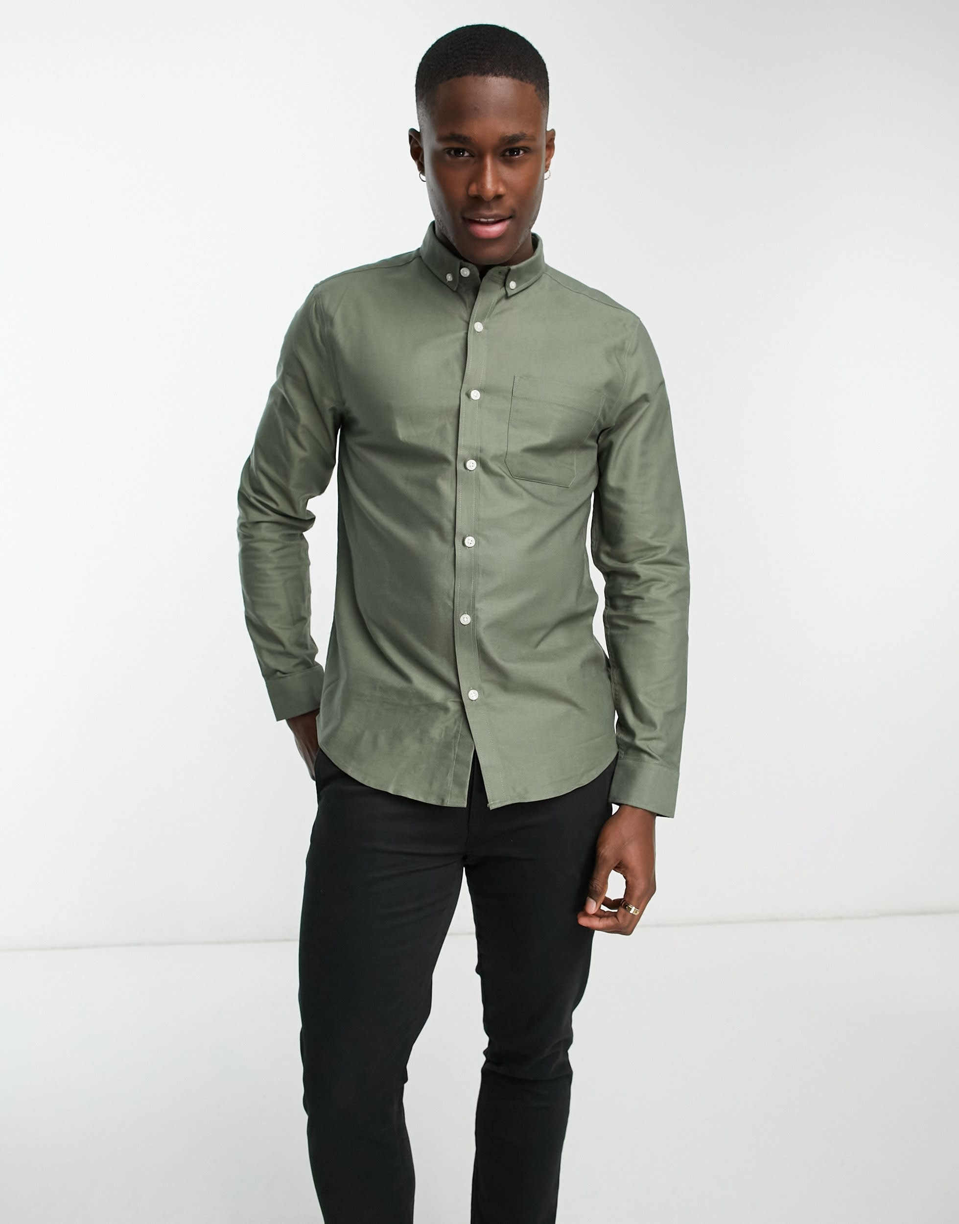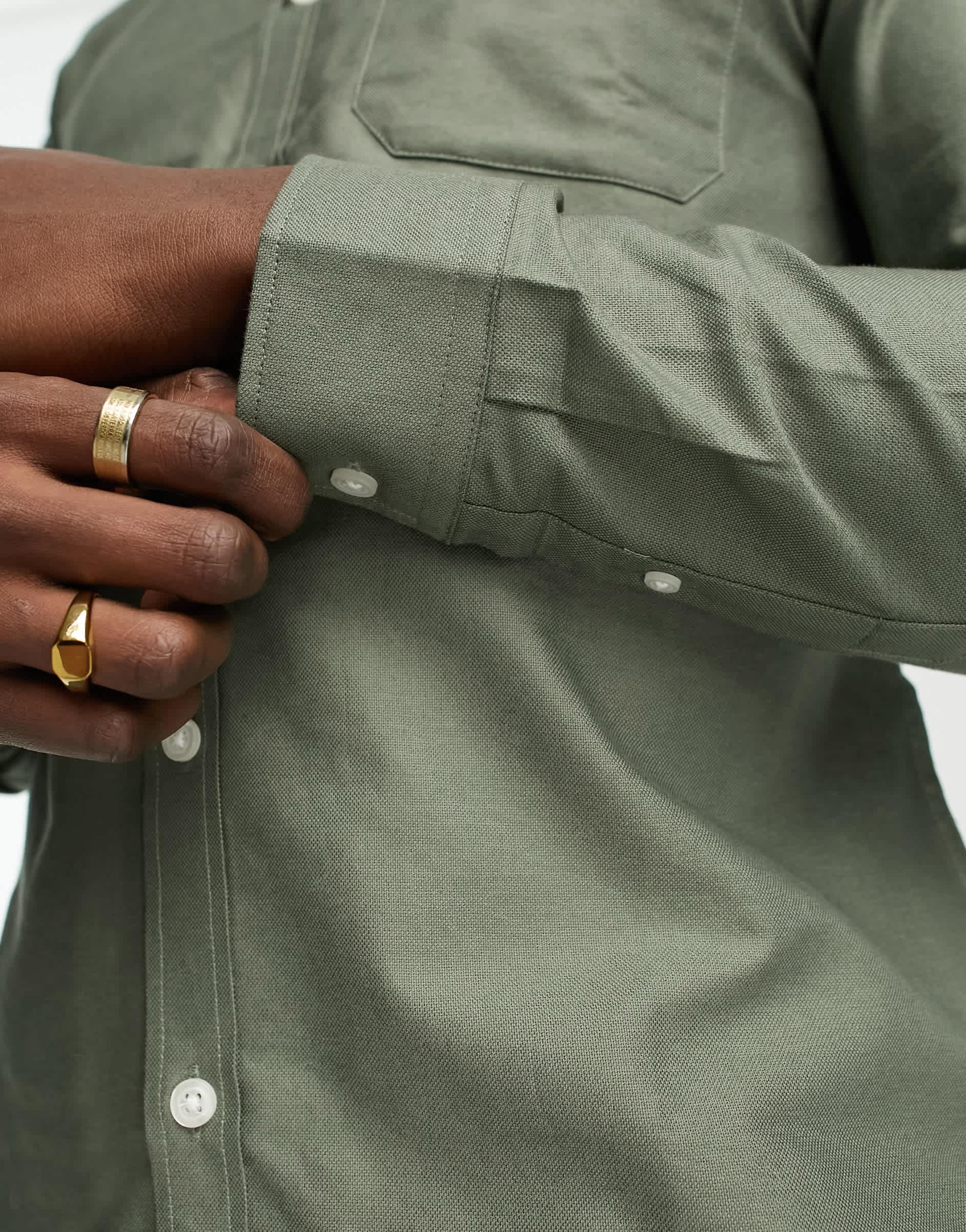 New Look smart long sleeve oxford shirt in khaki